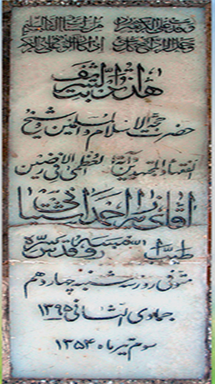 سنگ مزار آیتالله احمد آشتیانی در حرم حضرت عبدالعظیم(ع) شهر ری