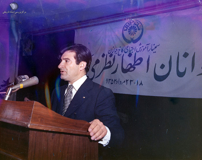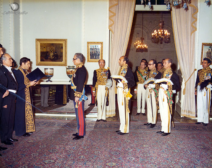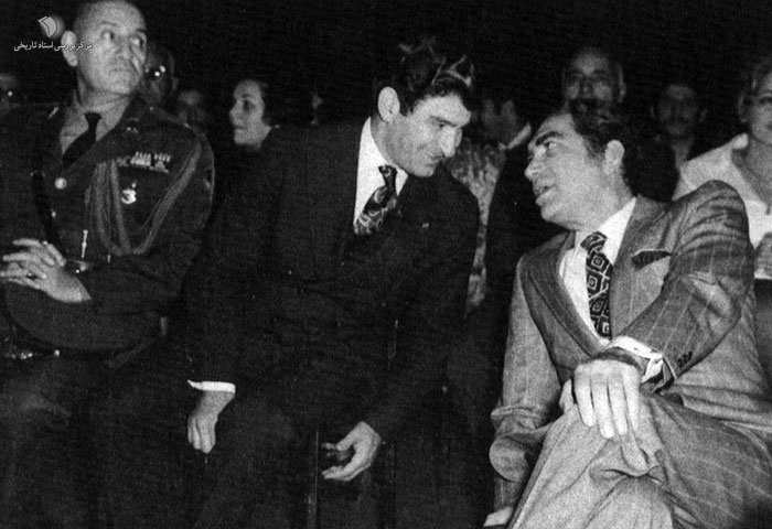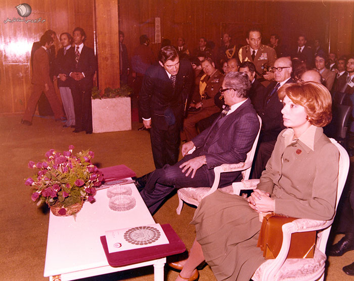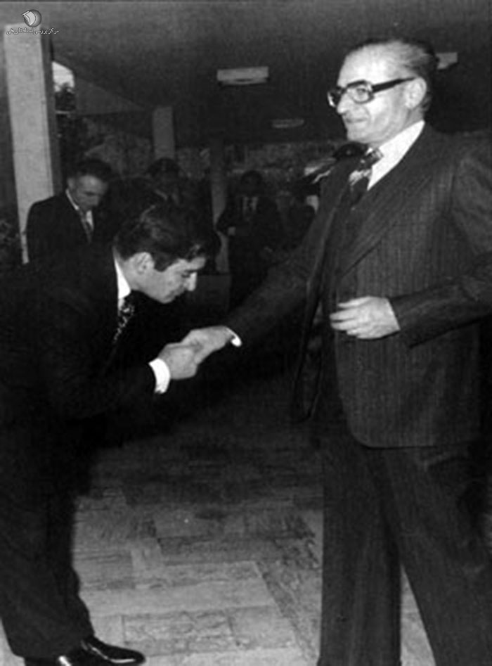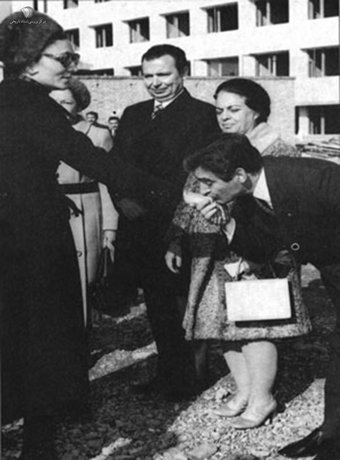 دستبوسی فرح، در کنار فرخ رو پارسا (وزیر بهائی آب) رژیم پهلوی کابینه هویدا