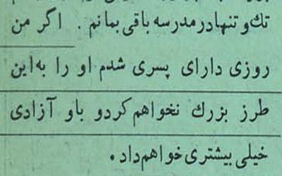 « اگر من روزی دارای پسری شدم، او را به این طرز بزرگ نخواهم کرد و به او آزادی خیلی بیشتری خواهم داد.»