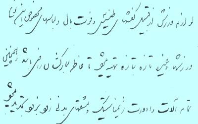 · سینیی 11 /6 /1312 «... و از جمله مشق ها و ورزش های بدنی، طنیس و پاطیناژ را بر سایر اسپورت های مجاز ترجیح می دهند. قایق سواری هم از آن وقتی که اجازه مرحمت شده، کمتر نموده اند؛ فقط در این مدت تابستان، پنج دفعه بوده است...»