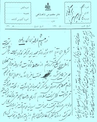 « ... شرحی که به تاریخ 22 شهریور نوشته بودید، رسید... در مکتوب اخیر، اشاره به احوال مزاجی من نموده و لزوم حفظ الصحه و ورزش را متذکر شده بودید. از این اشارت، که علامت مهر و محبت قلبی شما است، کمال مسرت را دارم. اگرچه در حفظ الصحه، حتی الامکان مراقبت می شود، ولی برای ورزش های مختلف، مجالی نیست. می دانید که تمام وقت من باید صرف کارهای مملکتی شود و دائماً به فکر و مطالعه مشغول باشم. به این جهت، ورزشی که انتخاب کرده ام، راه رفتن است؛ زیرا مانع فکر کردن نیست. همه روزه مقداری قدم می زنم و برای اصلاح مزاج، مفید و مؤثر واقع می شود. تذکرات محبت آمیز شما را هم که باعث تشویق و ترغیب است، البته فراموش نخواهم کرد...»
