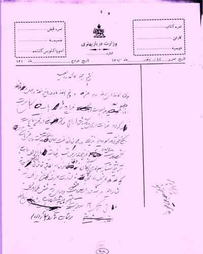 « راجع به ترفیع رتبه مستشار، معلم فارسی خودتان اظهار نموده اید. مطابق قانون استخدام... دو رتبه یک دفعه داده نمی شود، ولی محض رضایت شما به وزارت معارف گفته شد که یک رتبه به مشارالیه بدهند؛ در این صورت مستشار دارای رتبه شش خواهد بود.»