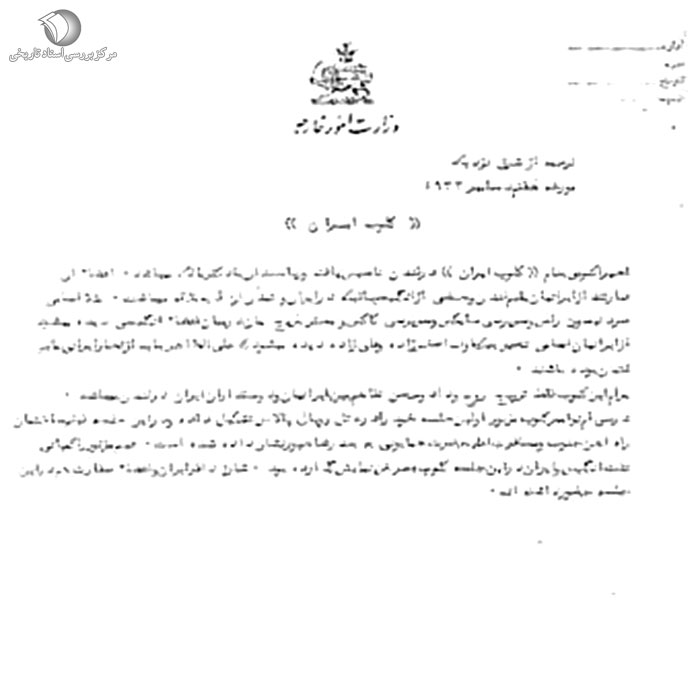اخیراً کلوپى به نام «کلوپ ایران» در لندن تأسیس یافته و ریاست آن با دکتر مالک مىباشد. اعضاى آن عبارتند از ایرانیان مقیم لندن و بعضى از انگلیسیهایى که در ایران و تمدن آن ذی علاقه مىباشند. مثلاً اسامى سردنیسون راس و سرپرسى سایکس و سرپرسى کاکس و مستر بریج مان در میان اعضاى انگلیسى دیده مىشود. از ایرانیان اسامى نصیر بیک اوف، اصغرزاده و علىزاده دیده مىشود که على الظاهر باید از تجار ایرانى مقیم لندن بوده باشند. مرام این کلوپ فقط ترویج روح و داد و حسن تفاهم بین ایرانیان و دوستداران ایران در لندن مىباشد. در سىام نوامبر، کلوپ مزبور اولین جلسه خود را در هتل رویال پالاس تشکیل داده و در این جلسه فیلم ساختمان راه آهن جنوب و مسافرت اعلیحضرت همایونى به بندرشاهپور نشان داده شده است. فیلم مزبور را کمپانى نفت انگلیس و ایران در این جلسه به معرض نمایش گذارده بود. شارژدافر [کاردار ] ایران و اعضاى سفارت هم در این جلسه حضور داشتهاند.