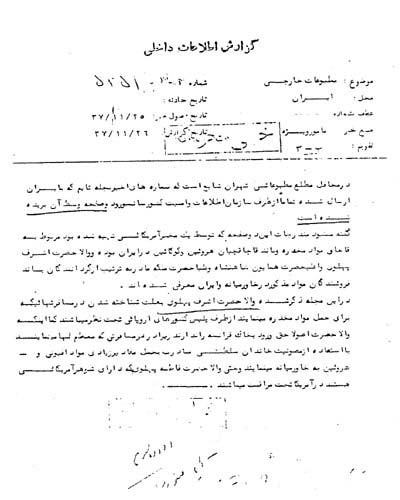 در محافل مطلع مطبوعاتى تهران شایع است که شمارههاى اخیر مجله تایم که به ایران ارسال شده تماماً از طرف سازمان اطلاعات و امنیت کشور سانسور و دو صفحه وسط آن بریده شده است. گفته مىشود مندرجات این دو صفحه که توسط یک مخبر آمریکایى تهیه شده بود، مربوط به قاچاق مواد مخدر و باند قاچاقچیان هروئین و کوکائین در ایران بوده و والاحضرت اشرف پهلوى و اعلیحضرت همایون شاهنشاه و علیاحضرت ملکه مادر به ترتیب از گردانندگان باند فروشندگان مواد مذکور در خاورمیانه و ایران معرفى شدهاند. در این مجله ذکر شده والاحضرت اشرف پهلوى به علت شناخته شدن در مسافرتهایى که براى حمل مواد مخدر مىنمایند، ازطرف پلیس کشورهاى اروپایى تحت نظر مىباشند کما اینکه والاحضرت اصولاً حق ورود به خاک فرانسه را ندارند؛ زیرا در هر مسافرتى که معظمٌ لها مىنمایند با استفاده از مصونیت خاندان سلطنتى مبادرت به حمل مقادیر زیادى مواد افیونى و هروئین به خاورمیانه مىنمایند و حتى والاحضرت فاطمه پهلوى که داراى شوهر آمریکایى هستند در آمریکا تحت مراقبت مىباشند.