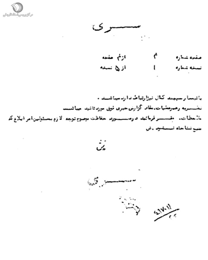 ملاحظات: مقرر فرمایید در مورد حفاظت موضوع توجه لازم به مسئولین امر ابلاغ که منبع شناخته نشود.