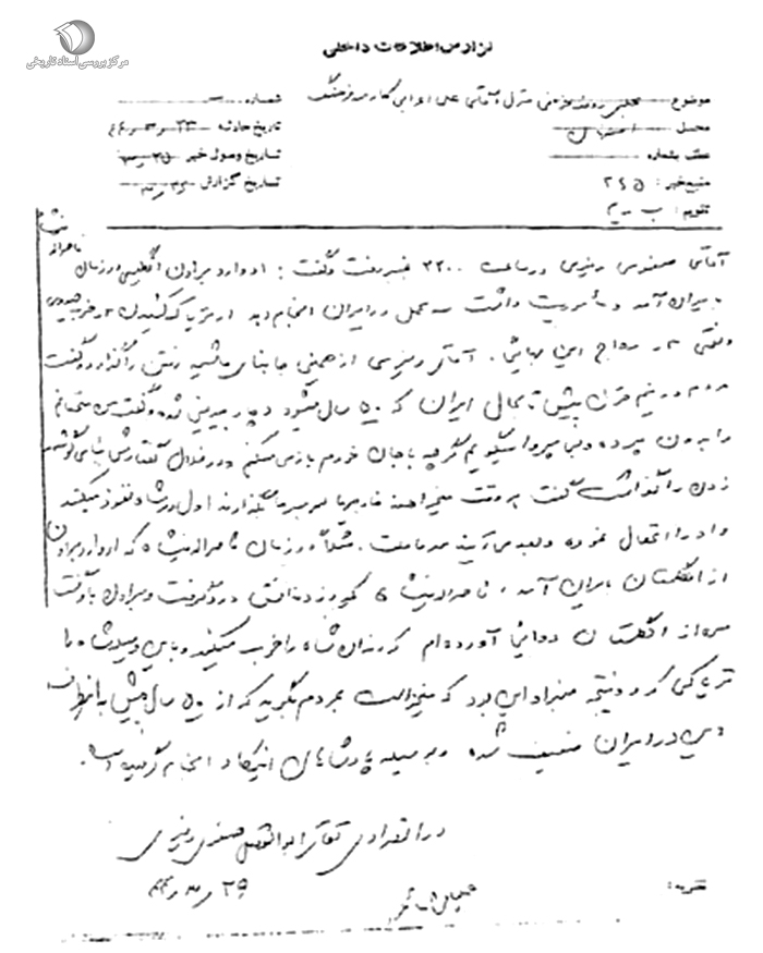 1ـ تریاک کشیدن 2ـ حزب حیدرى و نعمتى [درستکردن] 3ـ رواج دین بهایى.