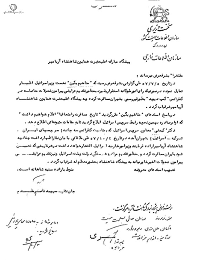 اوامر شاهانه به معاون سرویس اسرائیل ابلاغ گردید. 10 /3