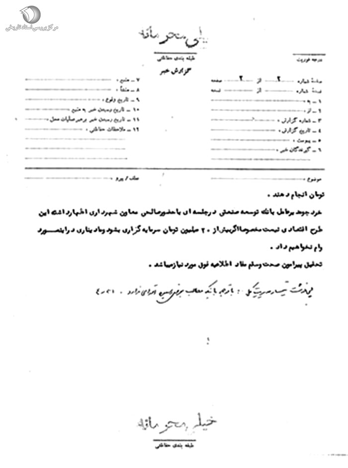پىنوشت تیمسار مدیریت کل: با توجه به اینکه مطالب به عرض رسیده اقدامى ندارد. 31 /4