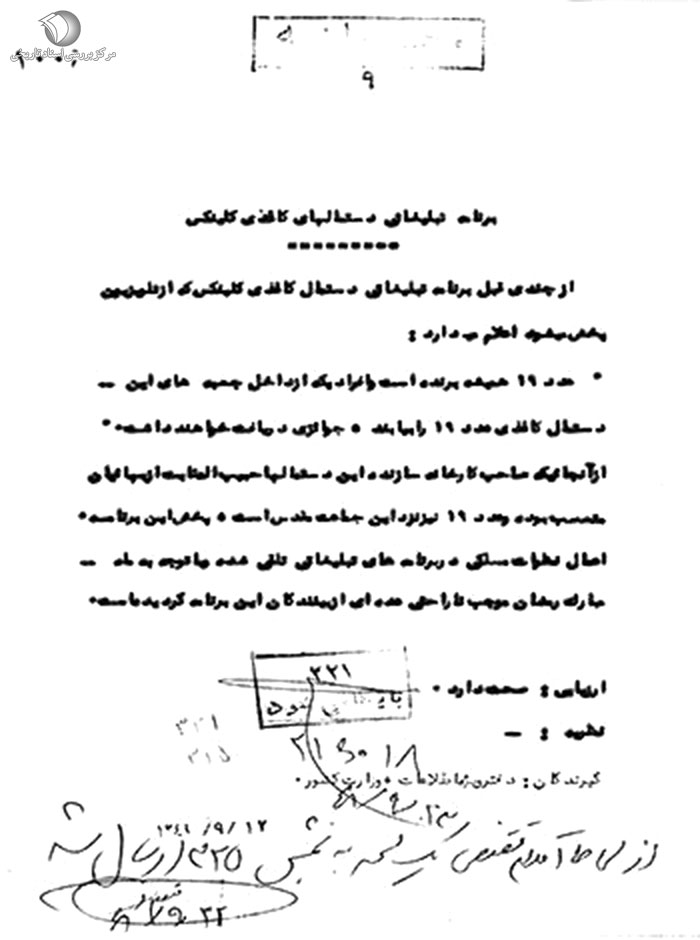 «عدد 19 همیشه برنده است و افرادی که از داخل جعبههای این ـ دستمال کاغذی عدد 19 را بیابند جوائزی دریافت خواهند داشت.» از آن جائی که صاحب کارخانه سازنده این دستمالها حبیباله ثابت از بهائیان متعصب بوده و عدد 19 نیز نزد این جماعت مقدس است، پخش این برنامه اعمال نظرات مسلکی در برنامههای تبلیغاتی تلقی شده و با توجه به ماه مبارک رمضان موجب ناراحتی عدهای از بینندگان این برنامه گردیده است.