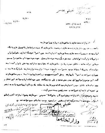موضوع: اظهارات دو نفر از مستخدمین در مورد آقای اردشیر زاهدی