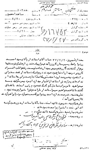 بعد از ظهر روز 20 / 2 / 37 جناب آقای استاندار و آقای سید احمد پیشوا1 واعظ به شهرستان کازرون آمده پس از پیاده شدن از هلیکوپتر مستقیماً بر مزار کشته شدگان رفته و سپس به میدان شاه جلو مسجد رفته و اغلب افراد کازرونی در میدان اجتماع نموده بودند. در موقعیکه استاندار قصد سخنرانی داشته مردم به سر و صدا پرداخته به طوریکه اصلاً اجازه سخنرانی به استاندار ندادهاند پس از مدتی استاندار اظهار میدارد: ای مردم به من بگوئید چه میخواهید تا من برای شما حل کنم که یک دفعه مردم با صدای بلند به اتفاق گفتند: ما شاه نمیخواهیم. سپس استاندار ناراحت و فوراً به شیراز عزیمت نمود. نظریه شنبه. خبر صحت دارد احمد پیشوا نیز که صحبت میکرد مردم او را هو کردند تا از منبر پائین آمد. ____________________________ |