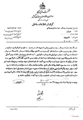 منبع: رجال عصر پهلوی، رشیدیانها به روایت اسناد ساواک، جلد اول، صفحه 327، مرکز بررسی اسناد تاریخی، چاپ اول، سال 1389.