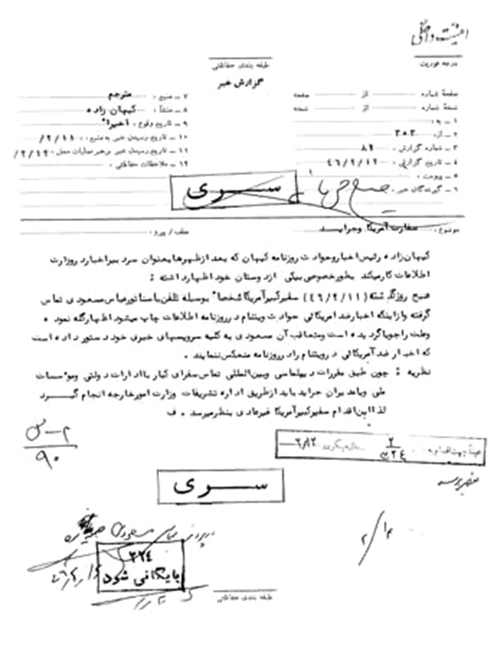 از ویژگیهای مطبوعات عصر پهلوی، نداشتن استقلال خبری و وابستگی به نهادهای مختلف خارجی و داخلی بوده است. اسناد نشان میدهد که پس از کودتای 28 مرداد 1332 اکثر قریب به اتفاق مطبوعات کشور از نظر سیاسی طرفدار غرب و در خدمت اهداف آنها بودهاند. تا آن جا که شادروان جلال آل احمد مقاله مفصل «ورشکستگی مطبوعات» را در ابتذال و انحطاط رکن چهارم مشروطه نگاشت. در این دوره مطبوعات تحت فشار ساواک و سرویسهای سیا، موساد و اینتلیجنت سرویس بودند. در سند زیر میبینیم که عباس مسعودی چگونه مانع از انتشار اخبار ویتنام در روزنامه کیهان در سال 1346 شده است. در سند میخوانیم: «سفیر کبیر آمریکا شخصاً به وسیله تلفن با سناتور عباس مسعودی تماس گرفته و از اینکه اخبار ضد آمریکایی حوادث ویتنام در روزنامه اطلاعات چاپ میشود اظهار گله نموده و علت را جویا گردیده است و متعاقب آن مسعودی به کلیه سرویسهای خبری خود دستور داده است که اخبار ضد آمریکایی در ویتنام را در روزنامه منعکس ننمایند»