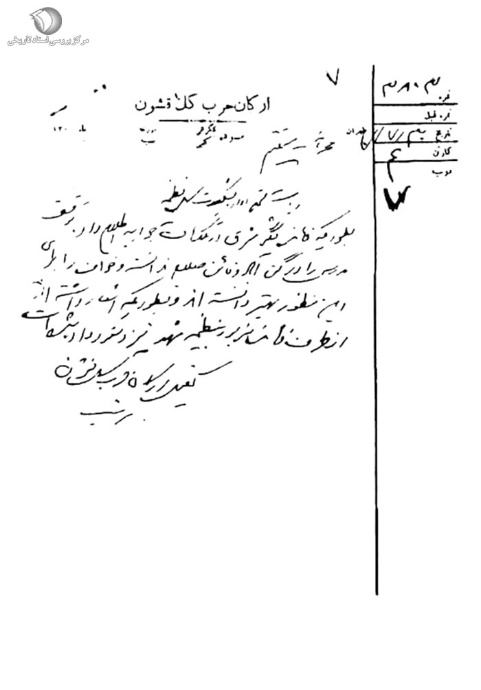 نمره وارده: 3803 تاریخ وصول: لیله 30 / 7 ماه 1307