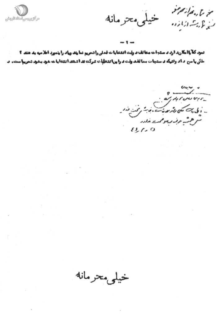 سپس کاظمیپور در مورد وضع داخلی و انتخابات سئوال نمود که آیا امکان دارد دستجات مخالف دولت انتخابات فعلی را تحریم نمایند و یا در این مورد اعلامیه بدهند؟