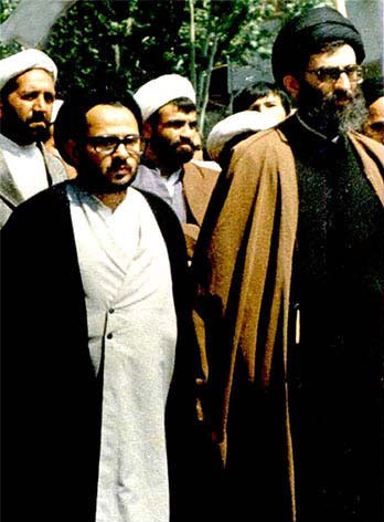 شهید حجتالاسلام سید عبدالکریم هاشمی نژاد به اتفاق آیتالله خامنه ای در یکی از از راهپیمایی های انقلاب در مشهد مقدس