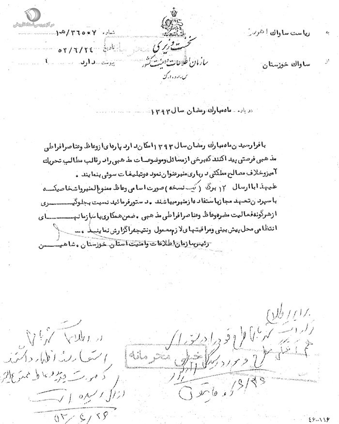 ضمناً از ساواک در صورت امکان[ناخوانا]