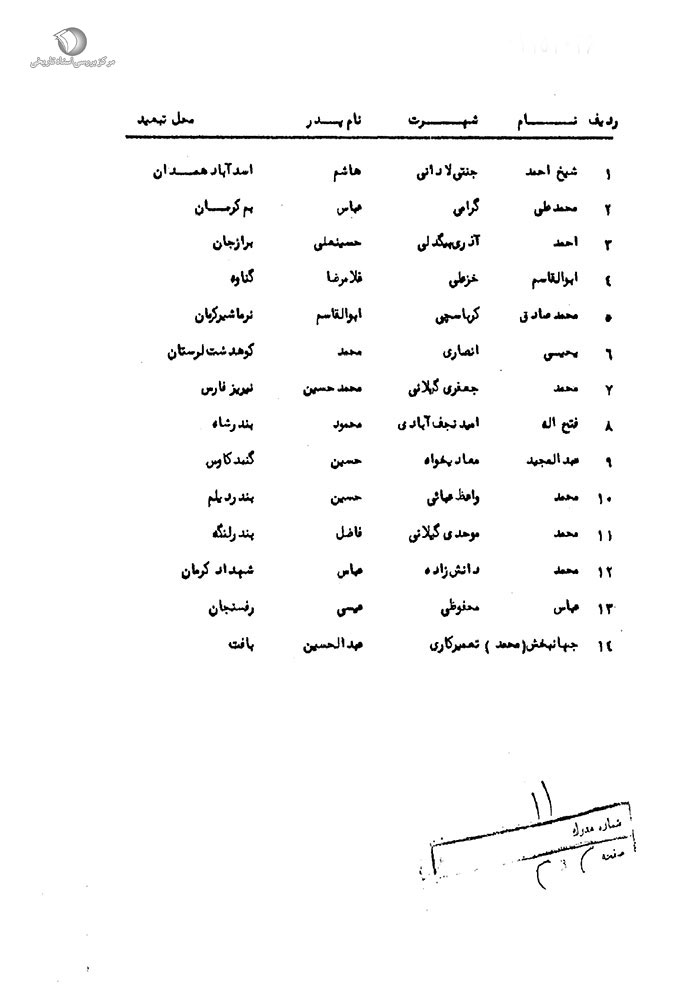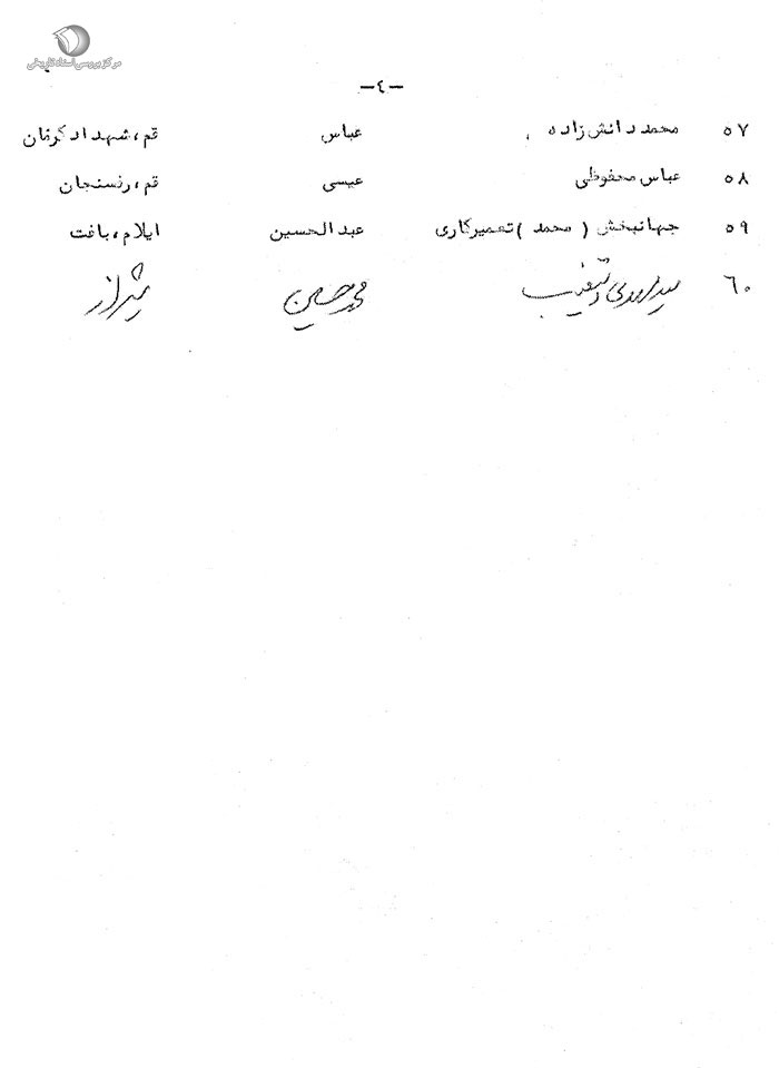 افرادی که لیست آنان به پیوست ایفاد میگردد از روحانیون اخلالگر و طرفدار خمینی در شهرستان قم میباشند که وضعیت آنان در کمیسیون امنیت اجتماعی شهرستان قم مطرح و طبق رأی مورخه 22 / 5 / 52 کمیسیون مزبور به سه سال اقامت اجباری در مناطق مختلف کشور محکوم گردیدهاند. نامبردگان پس از اطلاع از چگونگی موضوع، منطقه را ترک و متواری گردیدهاند. علیهذا خواهشمند است دستور فرمائید ترتیبی اتخاذ نمایند تا هرچه زودتر یادشدگان بازداشت و جهت انجام تشریفات لازم و اعزام به محلهای مورد نظر به قم اعزام گردند و از نتیجه این سازمان را آگاه سازند.
