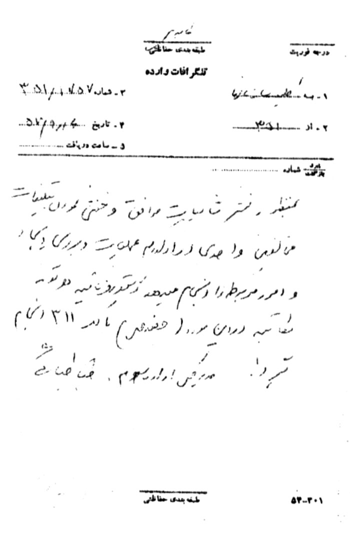 به منظور نشر شایعات موافق و خنثى نمودن تبلیغات مخالفین واحدى در اداره یکم عملیات و بررسى ایجاد و امور مربوطه را انجام میدهد. دستور فرمائید هرگونه مکاتبه در این مورد (خصوص) با کد 311 انجام گیرد.[1]