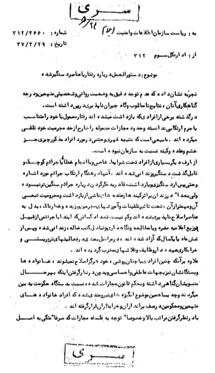دستورالعمل ساواک در تغییر روشهای غیر انسانی آن سازمان با دستگیرشدگان در سال 1357