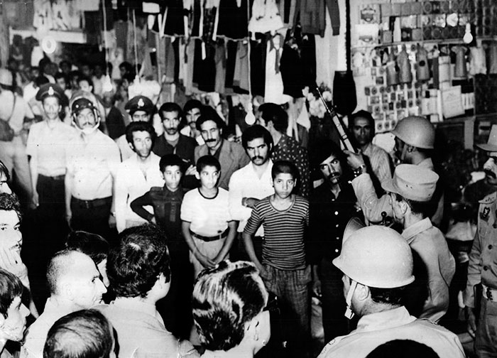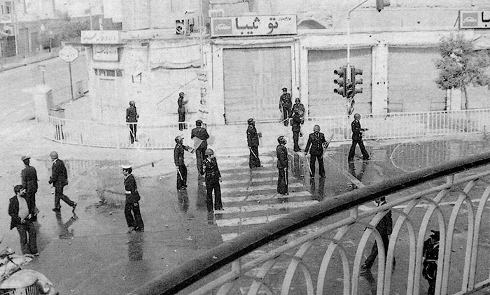 6ـ در همایونشهر عدهاى از اهالى به تحریک شخصى به نام برهانى و سید محمد حجازى به طرف شهربانى با قمه و قداره حمله ابتدا با بلندگو به آنان اخطار که توجهى ننموده سپس با گاز اشکآور و شلیک چند تیر هوائى متفرق گردیدهاند.