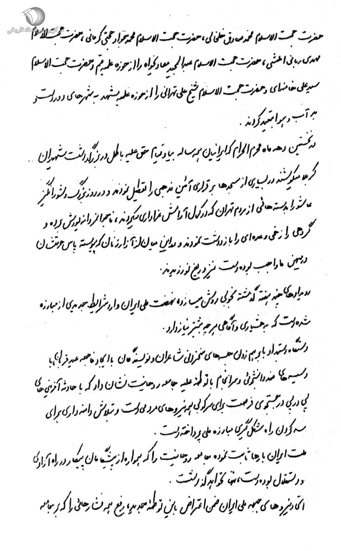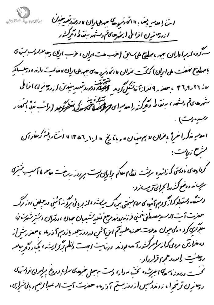 اعلامیه مذکور اخیراً با عنوان «هم میهنان» و با تاریخ«1 / 10 / 1356» انتشار یافته که مفاد آن به شرح زیر است: