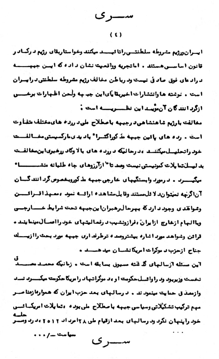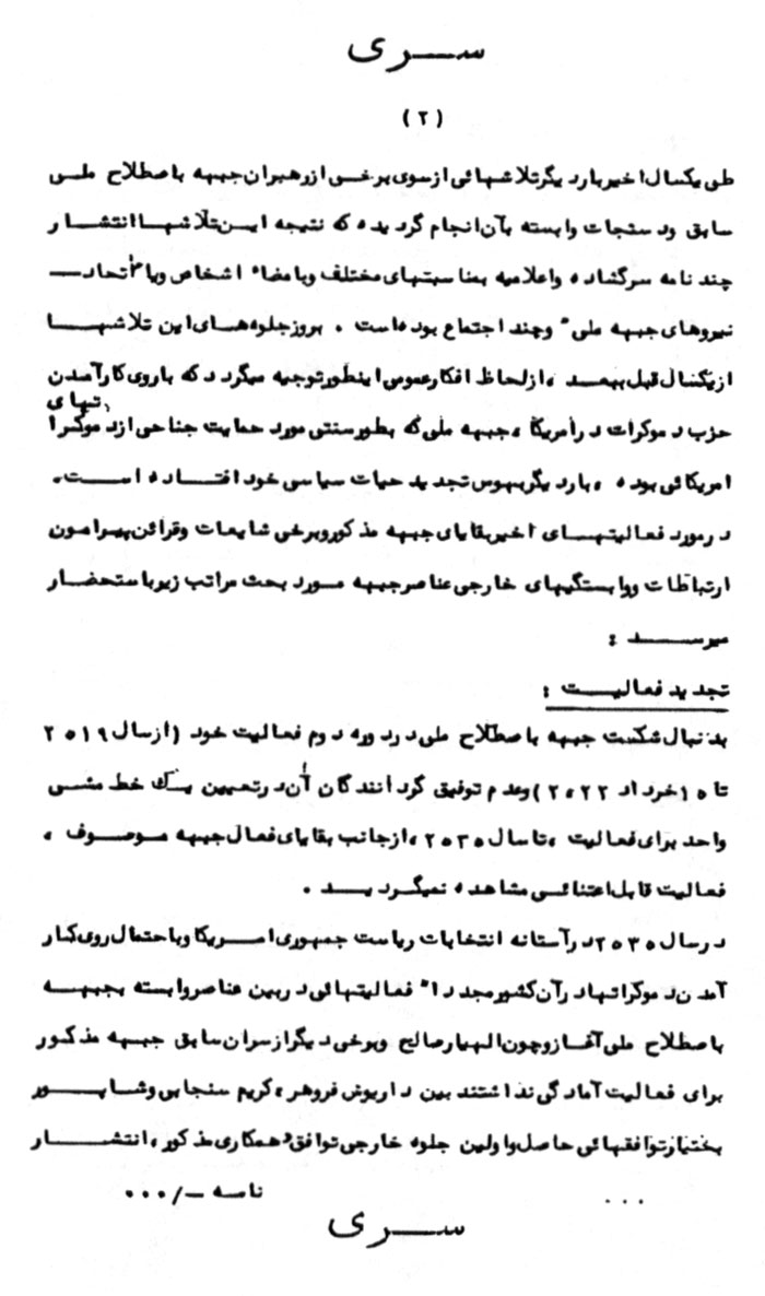 [1] . این بولتن ویژه تحت عنوان «در باره فعالیت جبهه به اصطلاح ملى و ارتباطات و وابستگىهاى خارجى اعضاء آن با شماره 6413 / 312 و تاریخ 27 / 9 / 36 منتشر شد. توضیح این که صفحه اول این بولتن ویژه آورده نشده است.