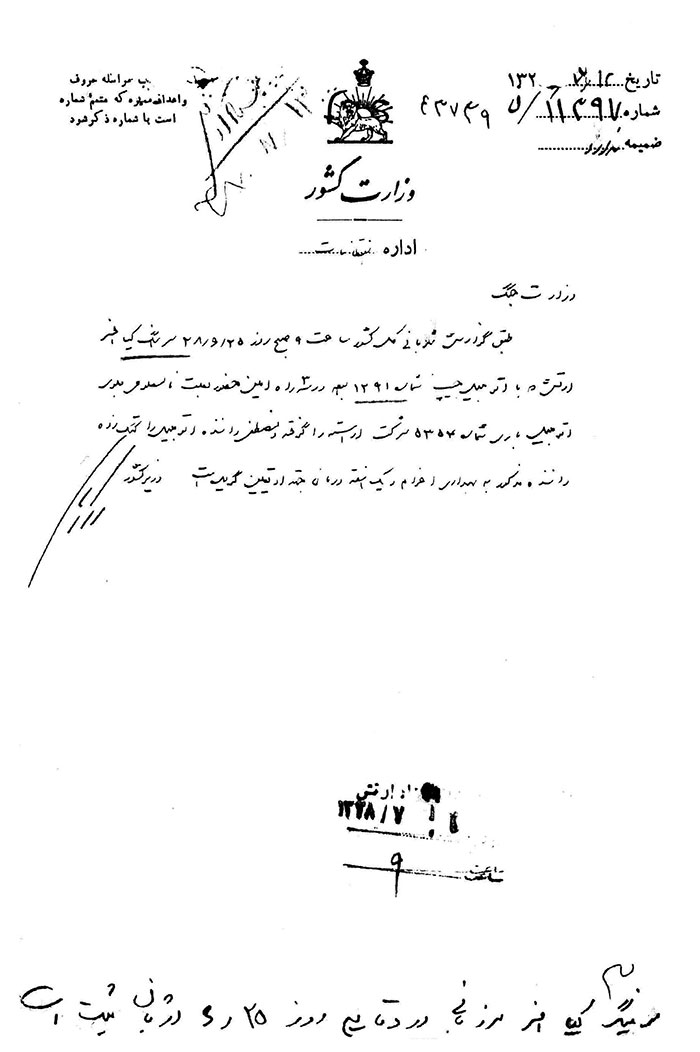از: وزارت کشور تاریخ: 12 / 7 / 1328