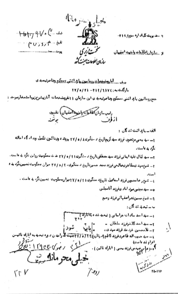 از: سازمان اطلاعات و امنیت اصفهان تاریخ: 3 / 6 / 37 [1357]