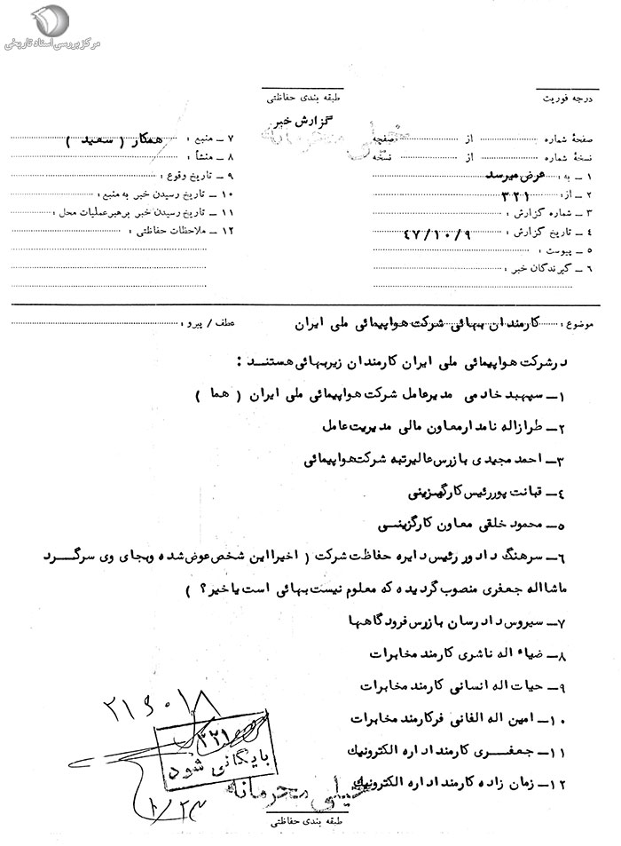 موضوع: کارمندان بهائی شرکت هواپیمائی ملی ایران