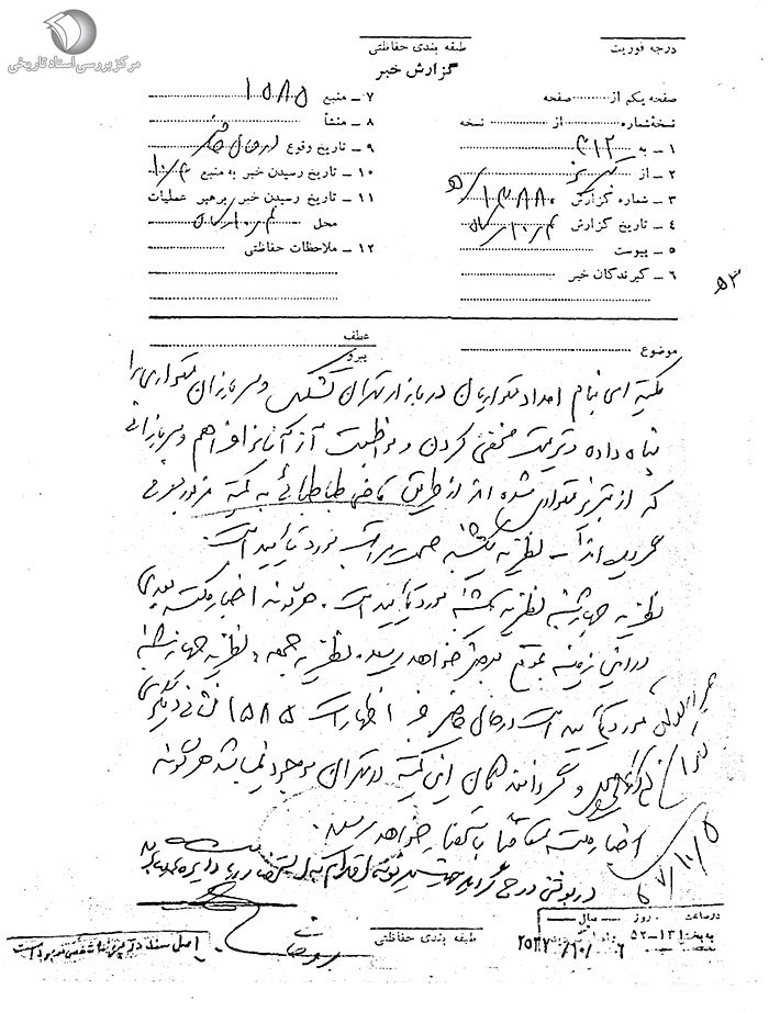 در بولتن درج گردید جهت هرگونه اقدام به استحضار ریاست عملیات برسد. روحانی