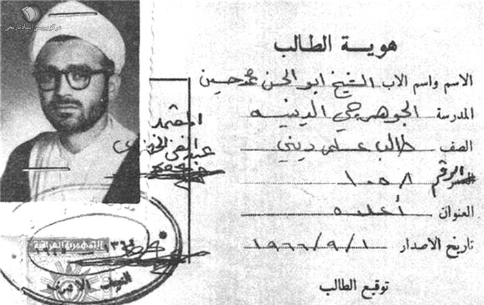جواز اقامت شهید سید علی اندرزگو در عراق با نام شیخ ابوالحسن نحوی