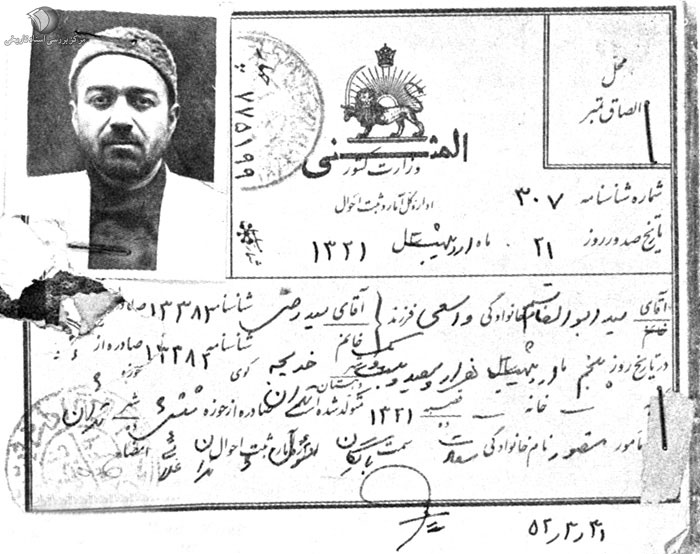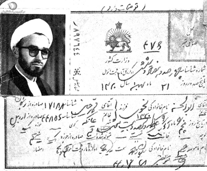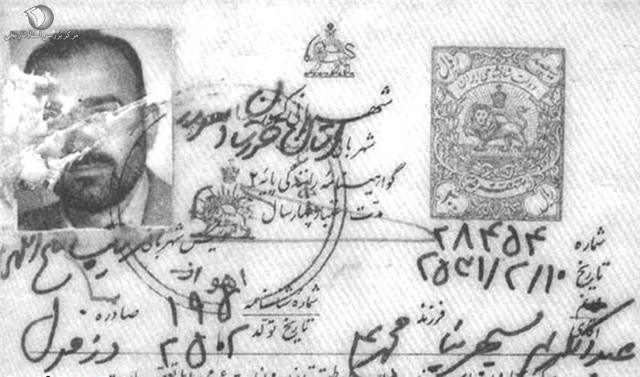 شناسنامه شهید سید علی اندرزگو با نام شیخ ابوالحسن نحوی