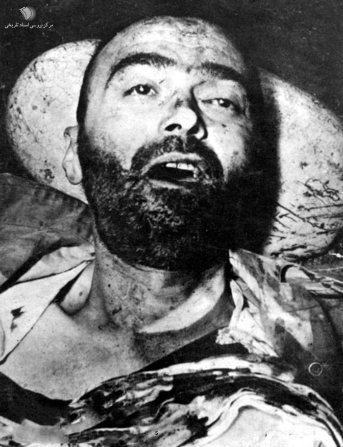 پیکر شهید سید علی اندرزگو لحظاتی پس از شهادت.غروب رمضان 1357- (2-6-1357)