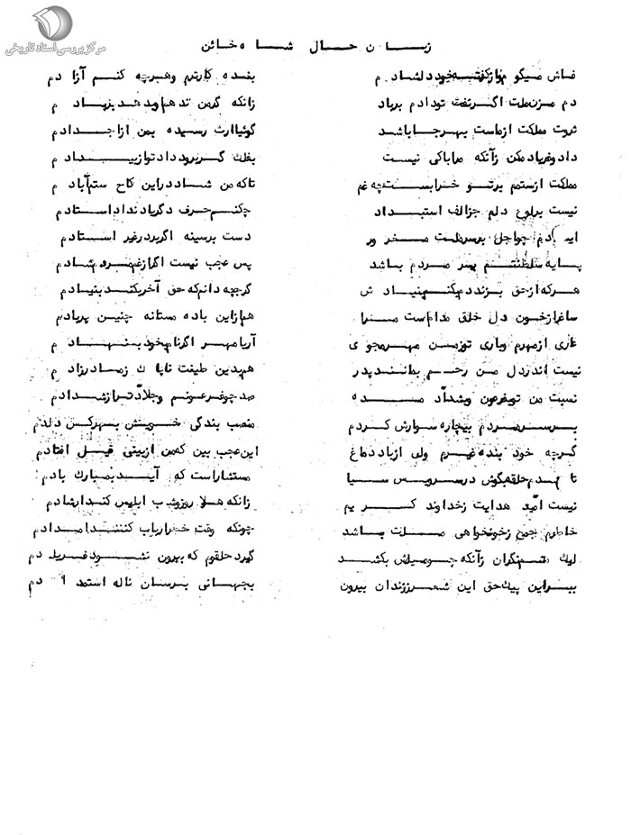 ببر این[ای] پیک حق این شعر ز زندان بیرون به جهانی برسان ناله استمدادم