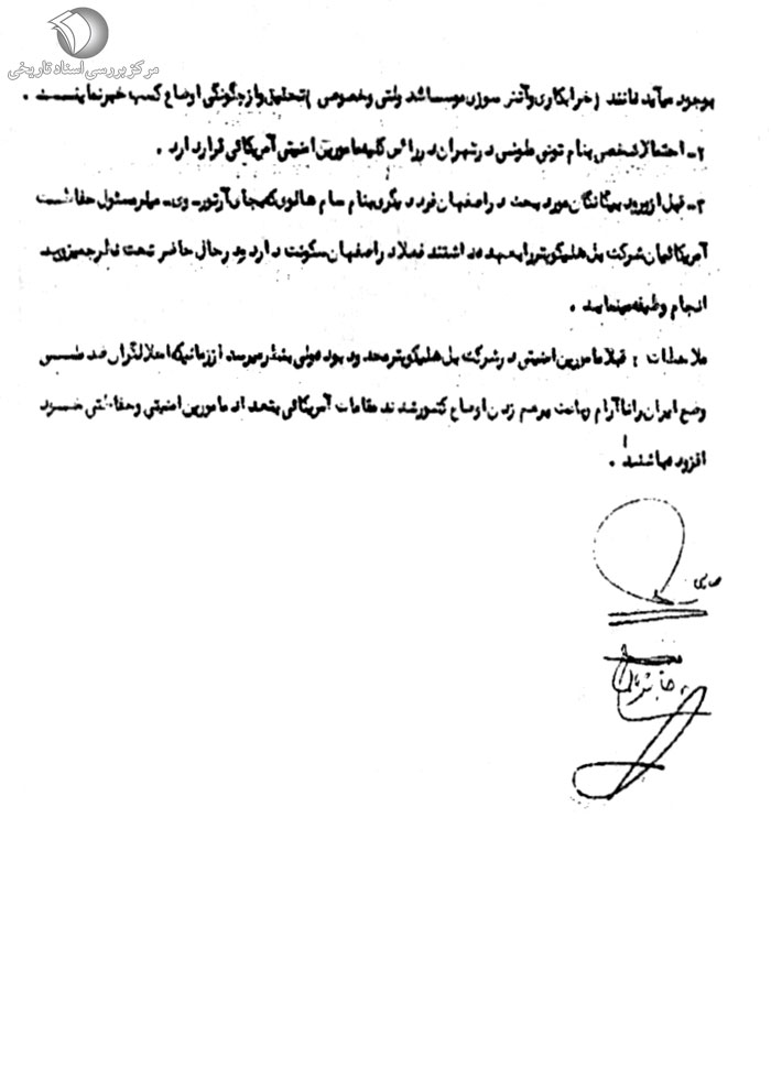 ضمن مذاکراتى که با آمریکاییان مقیم اصفهان پیرامون اوضاع سیاسى ایران به عمل آمده چنین استنباط گردید که بعضى کارکنان شرکت بلهلیکوپتر از افراد اطلاعاتى آمریکا هستند و دلائل زیر گویاى این موضوع میباشد.