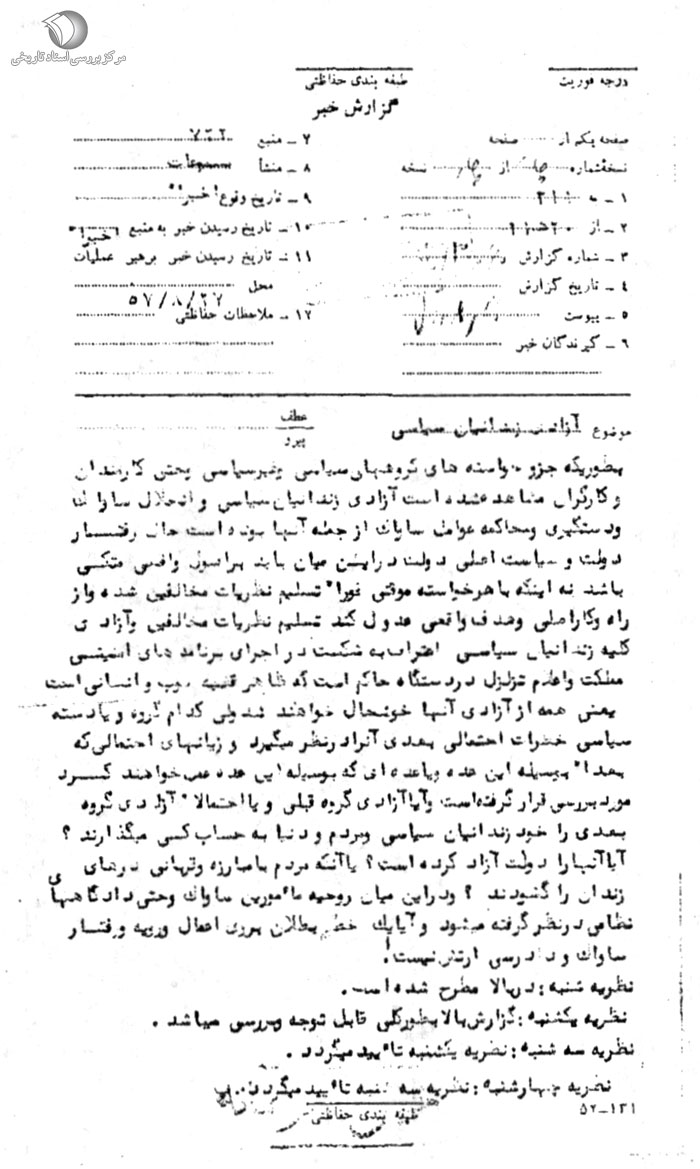 به طوری که جزو خواستههاى گروههاى سیاسى و غیرسیاسى و حتى کارمندان و کارگران مشاهده شده است، آزادى زندانیان سیاسى و انحلال ساواک و دستگیرى و محاکمه عوامل ساواک از جمله آنها بوده است. حال رفتار دولت و سیاست اصلى دولت در این میان باید بر اصول واقعى متکى باشد نه این که با هر خواسته موقتى فوراً تسلیم نظریات مخالفین شده و از راه و کار اصلى و هدف واقعى عدول کند، تسلیم نظریات مخالفین و آزادى کلیه زندانیان سیاسى اعتراف به شکست در اجراى برنامههاى امنیتى مملکت و اعلام تزلزل در دستگاه حاکم است که ظاهر قضیه خوب و انسانى است یعنى همه از آزادى آنها خوشحال خواهند شد ولى کدام گروه یا دسته سیاسى خطرات احتمالى بعدى آن را در نظر میگیرد و زیانهاى احتمالى که بعداً به وسیله این عده و عدهاى که به وسیله این عده عمل خواهند کرد مورد بررسى قرار گرفته است؟ و آیا آزادى گروه قبلى و یا احتمالاً آزادى گروه بعدى را خود زندانیان سیاسى و مردم و دنیا به حساب کى میگذارند؟ آیا آنها را دولت آزاد کرده است؟ یا آن که مردم با مبارزه و قربانى درهاى زندان را گشودند؟ و در این میان روحیه مأمورین ساواک و حتى دادگاههاى نظامى در نظر گرفته میشود و آیا یک خط بطلان به روى اعمال و رویه و رفتار ساواک و دادرسى ارتش نیست؟