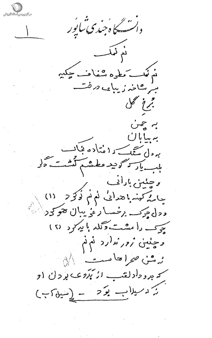 در ساعت 9:30 روز 11 / 12 / 50 شخصی به نام عنایتاله قرار از خوابگاه دانش سرای عالی توسط اکیپ شهاب دستگیر و تحویل افسر نگهبان کمیته گردید و ضمناً شش برگ پیوست از محتویات جیبهای نامبرده به دست آمد که قابل بررسی میباشد.