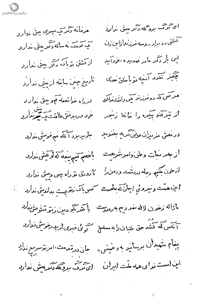 پیغام شهیدان برسانید به «خمینی» جان در قدمت، امر تو سرپیچ ندارد