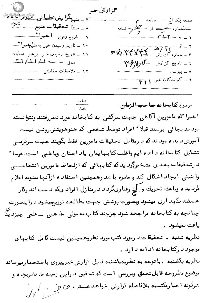 [3] . به نظر میرسد این گزارش دارای صفحهای دیگری بوده است که در سوابق موجود نیست.