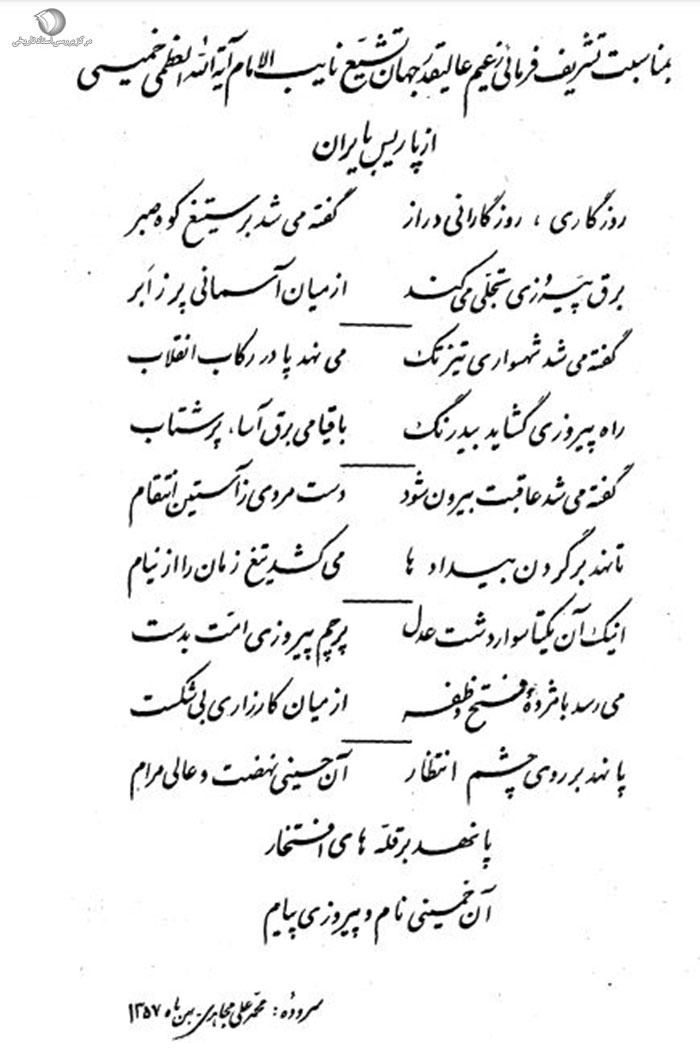 به مناسبت تشریف فرمائی زعیم عالیقدر جهان تشیع نایبالامام آیتالله العظمی خمینی