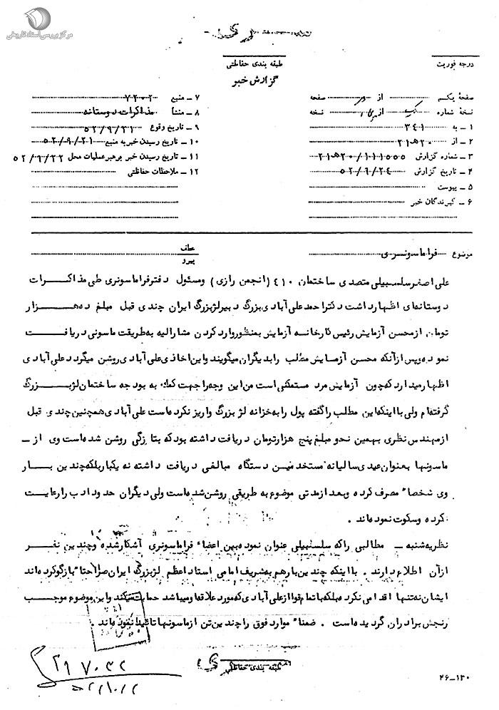 اخاذی دکتر احمد علیآبادی از ماسونها و حمایت جعفر شریفامامی از او