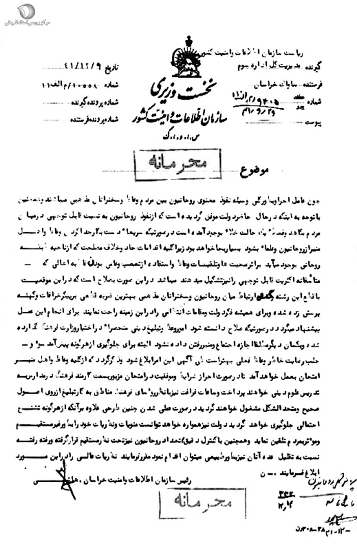 نظر رئیس ساواک خراسان برای از بین بردن استقلال و نفوذ روحانیت