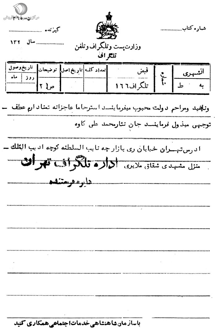 [182]. سند شماره: 16368 / 20 / 7 / م – 31 / 5 / 46، همان.