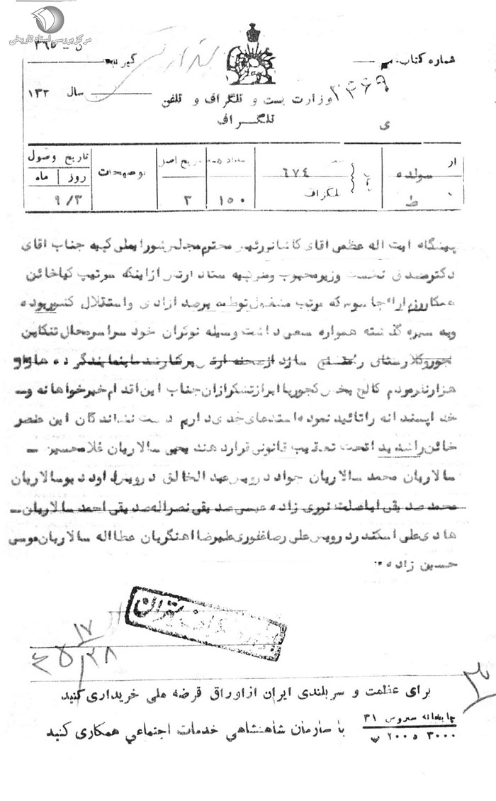 [178]. سند شماره 3154 / 304 - 6 / 2 / 46، همان.