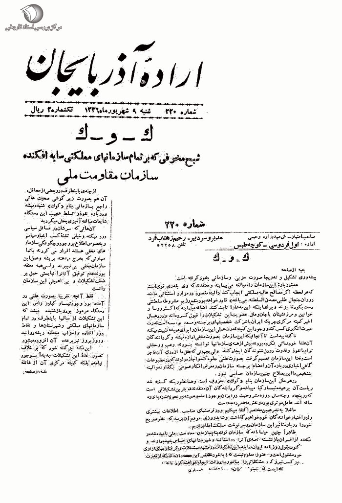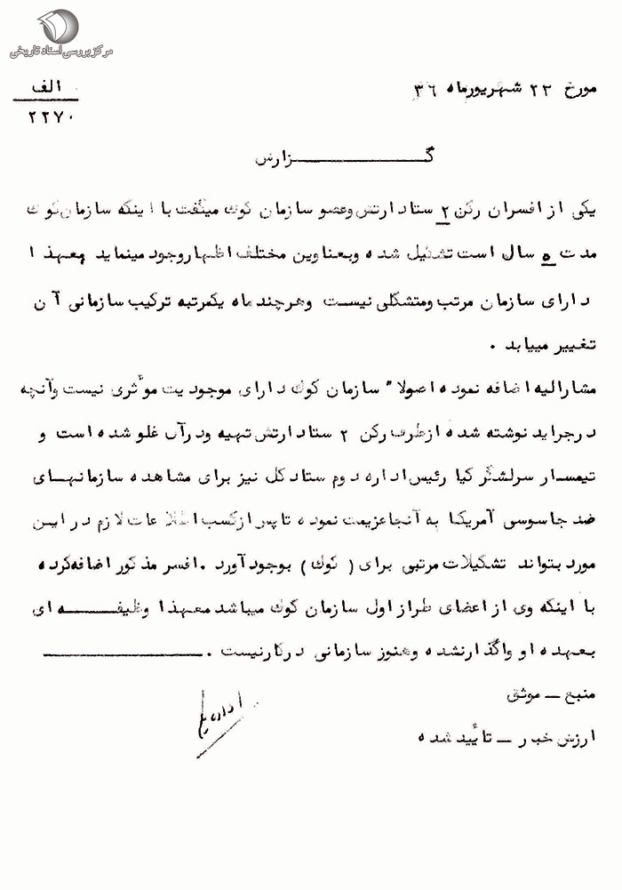 [209]. سند شماره: 2270 / الف - 23 / 6 / 36، رجال عصر پهلوی به روایت اسناد ساواک، سپهبد حاجعلی کیا و سازمان کوک، مرکز بررسی اسناد تاریخی.
