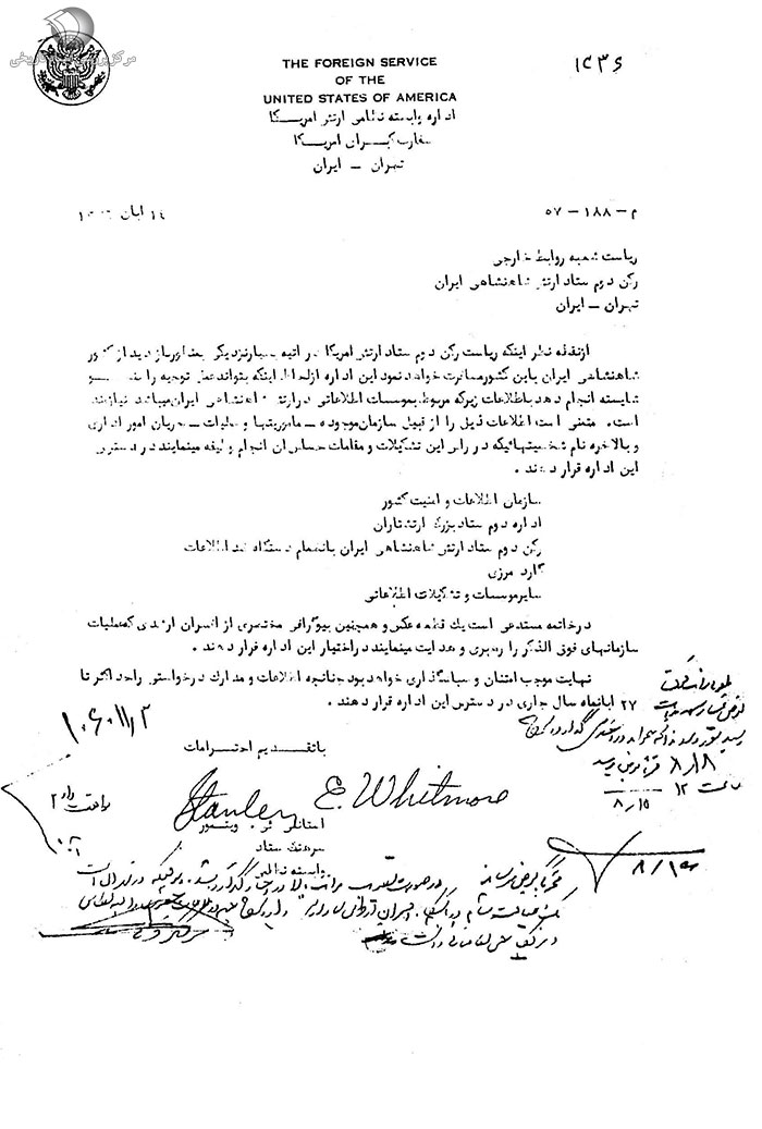 [186]. نامه مورخه 11 ژانویه 69، 21 دیماه 47 و سند شماره: 1963- 28 / 10 / 1347، همان.