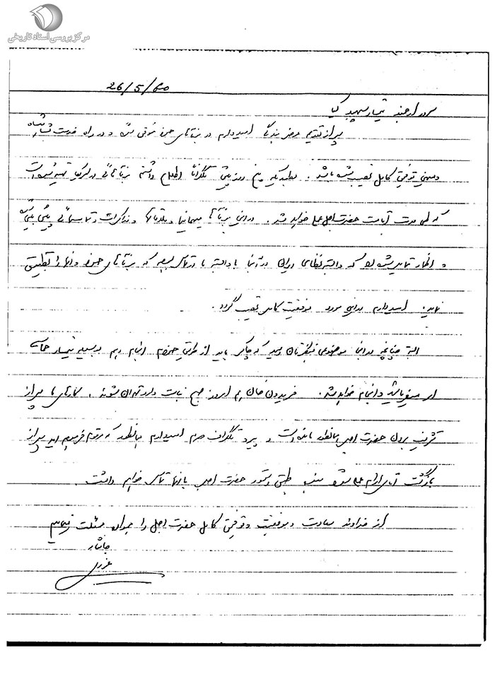 [231]. نامه مورخه 26 / 5 / 60[6 / 3 / 1339]، همان.