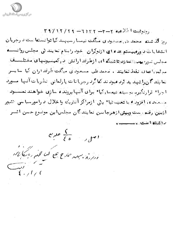 [203]. سند شماره: 932 / 300 / الف - 7 / 10 / 44، همان.