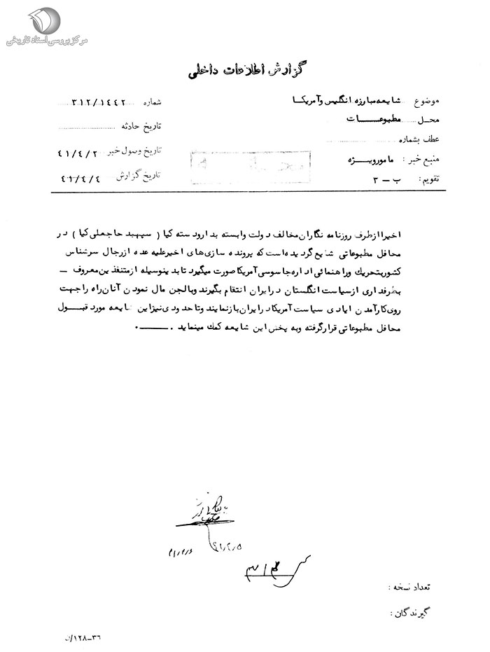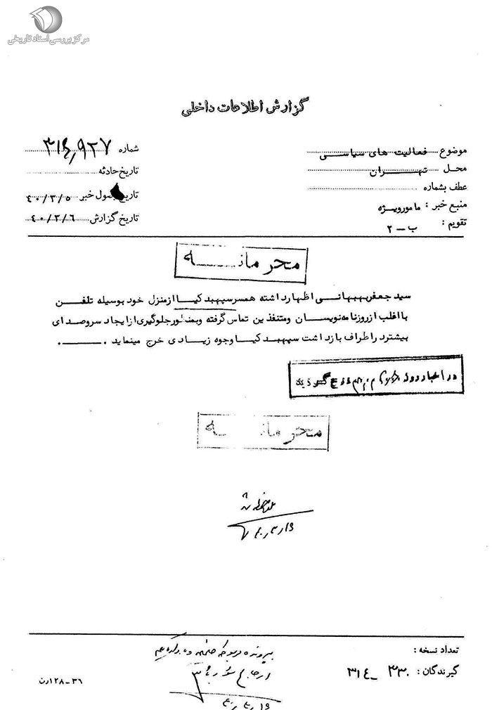 [261]. سند گزارش اطلاعات داخلی - 11 / 8 / 38، همان.